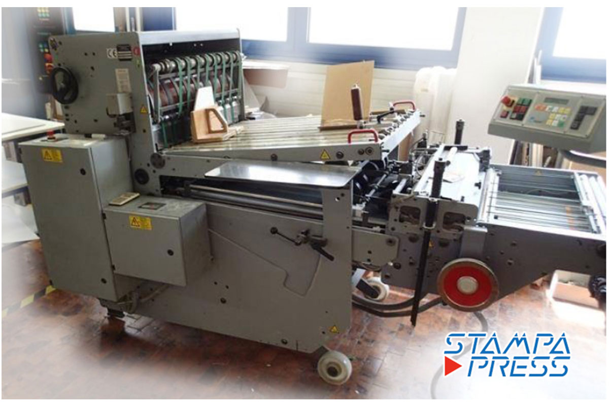 Impostazioni digitali, 6 tasche in prima stazione, doppio coltello elettronico (possibile uscita a dx e sx dopo primo coltello), uscita a squame o calandra (valletto).