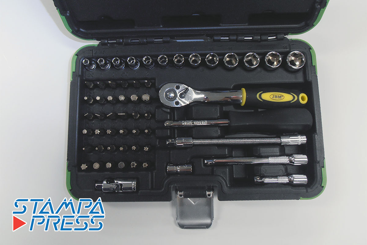 chiave a cricchetto, set di chiavi a bussola, maniglia girevole, barra di prolunga, ecc.